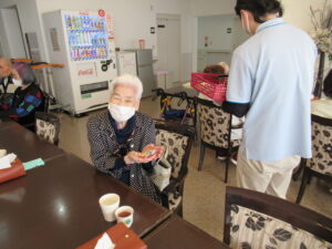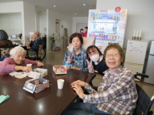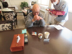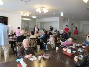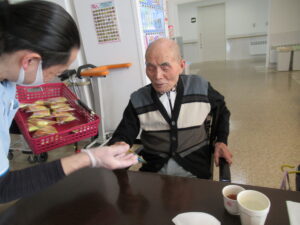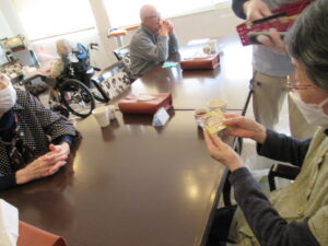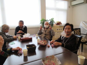 豆菓子や甘酒などをご提供し、和やかに談笑されています。