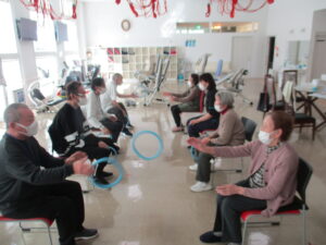 最後にアイテム体操にてリングを使った体操で向かいの方と協力しながら同時にキャッチ&スロー