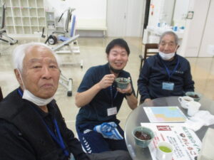 全体プログラムの終了後に皆様で温かいおしるこを召し上がりながら過ごしていただきました!