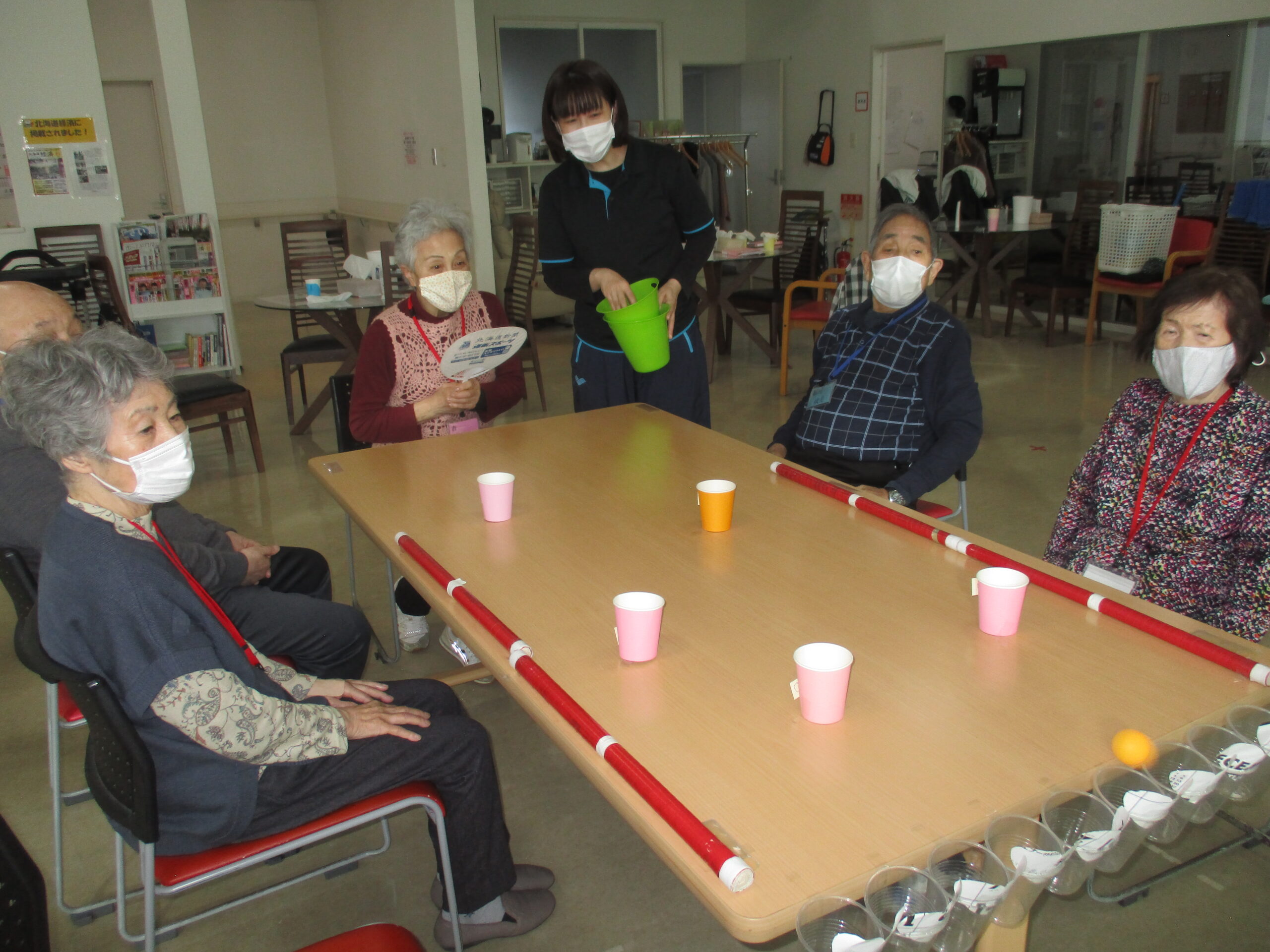 お互いに声を掛け合いながら、勢いをつけて放っていきます。