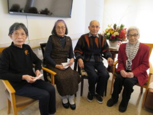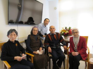 みなさんこんにちは 本日は、人生の先輩であるみなさまの ご健康と ご長寿をお祝いするため このような ささやかな会を開かせていただく運びとなりました。心より感謝申し上げます。どうぞよろしくお願いいたします。かつては「人生50年」 と言われた時代もありましたが みなさまの お元気な姿を拝見しますと 現代では 「人生100年」 と言っても過言ではないと感じます。長寿の秘訣は 毎日を明るく そして楽しく過ごすことにあるのでしょう。人生の達人であるみなさまにとっては すでにご存知のことでしょうが 改めてその大切さを 感じずにはいられません。本日は 歌や踊りを通じて みなさまと楽しいひとときを共有したいと考えております。飛び入り参加も大歓迎ですので どうぞ遠慮なく いっしょに楽しみ 声を合わせて歌っていただければと思います。また、こうした機会を通じて みなさま同士の交流を深めていただければ幸いです。みなさまが、ますます元気で これからの人生も さらに充実したものとなりますよう 願いを込めて 本日の催しを進めてまいります。どうぞ リラックスしてお楽しみください。