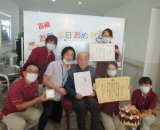 3. 記念品贈呈 (入居者代表/佐藤 頼男様)
